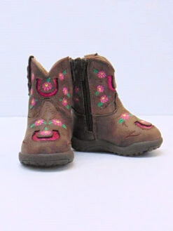 Roper 09-016-1903-2171 Infants Floral Embroidery Lucky Horseshoe Cowbabies Boots Brown