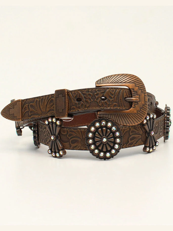 Angel Ranch D140000602 Womens 1″ Embossed Large Copper Concho Belt Brown