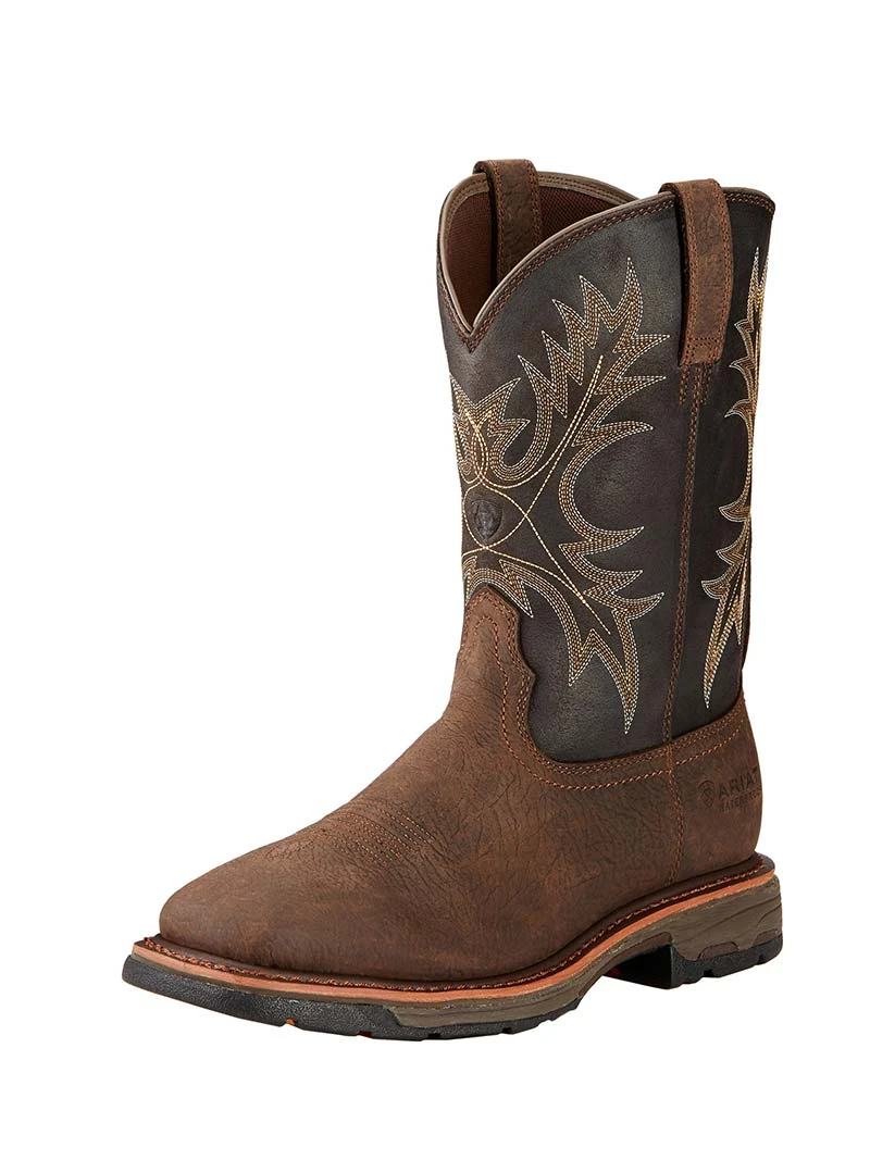 Ariat 10017436 Mens WorkHog Wide Square Waterproof Boot Bruin Brown