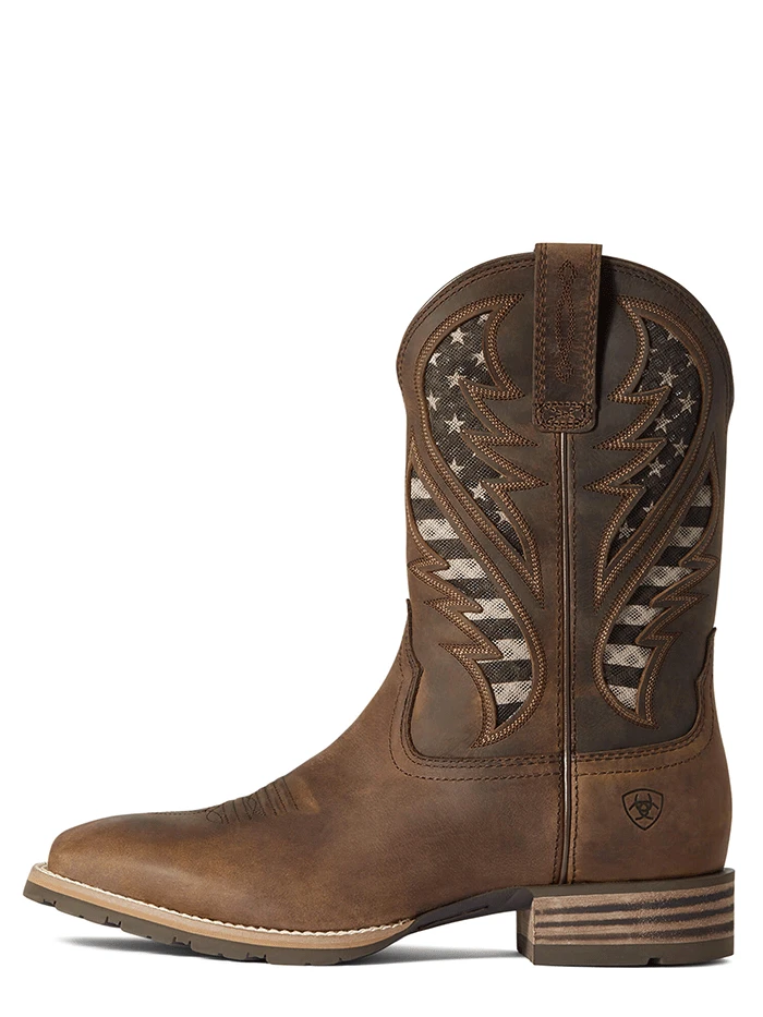 Ariat 10038340 Mens Hybrid VentTEK Western Boot American Flag Distressed Brown