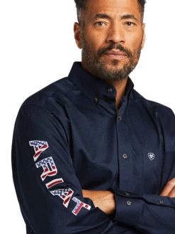 Ariat 10039368 Mens Team Logo Twill Classic Fit Shirt Navy Star Stripe