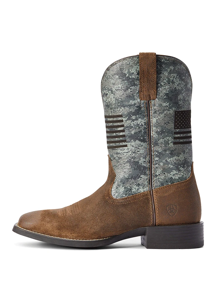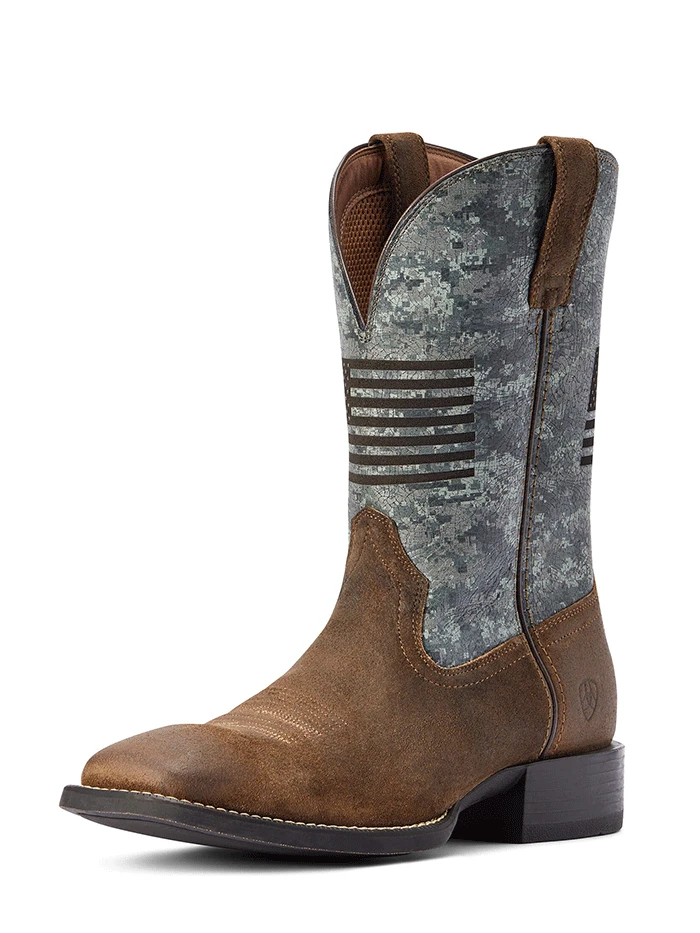 Ariat 10042405 Mens Sport Flying Proud Western Boot Tumbleweed Taupe – This lightweight pair packs a punch, thanks to the cool, camo-print shaft and lasered-on American flag. The toned-down colors keep it versatile—the kind of boot you can feed in or run around town in.
