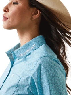 Ariat 10043553 Womens Team Kirby Stretch Shirt Caidant Print – Wear-tested and ready to ride, this team-style button-front shirt has a figure-skimming fit and just the right amount of stretch so it moves with you. It’s all that and wrinkle resistant, too.