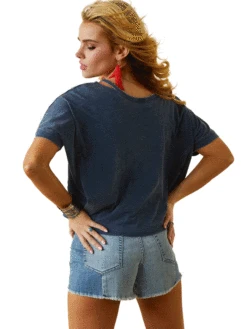 Ariat 10043882 Womens Francesca Top Deep Petroleum – With its slightly cropped, sharkbite hem and oversized fit, this flowy top turns heads wherever it goes. The soft, burnout jersey fabric has a subtle texture that’s cute with everything from denim to skirts.
