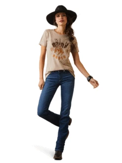 Ariat 10044615 Womens Vintage Rodeo T-Shirt Oatmeal Heather – Bring a little vintage rodeo flair to your everyday look in this classic tee. Its soft jersey fabric keeps you comfy in and out of the saddle.