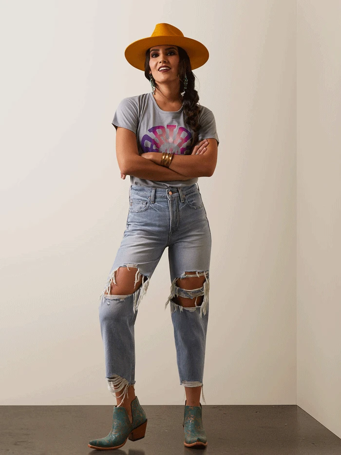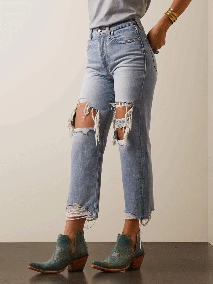 Ariat 10045187 Womens Ultra High Rise Tomboy Straight Jean Mykonos – A nod to classic denim but with the versatility of a lightly distressed straight leg, this non-stretch, 100% cotton jean is an instant fave. The cropped hem hits right at your ankle so you can show off your favorite booties.