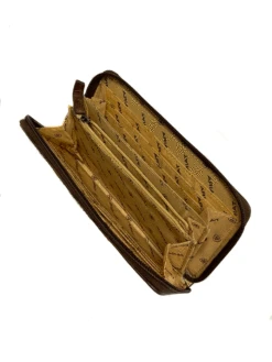 Ariat A770011102 Womens Addison Floral Wallet Brown – Leather with a floral embroidered pattern that runs the outline of the wallet. Slots for credit cards. Zip closure.