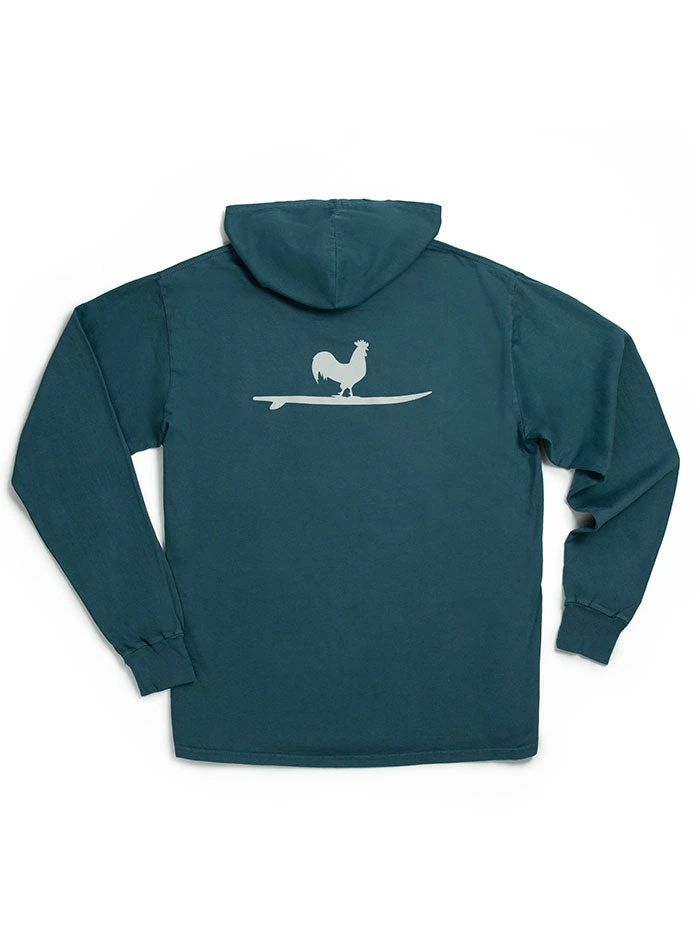 It’s about time! Â The traditional surfing rooster and text is one of our most popular designs, and our medium weight sweatshirts set the standard for warmth and comfort. Â So, what took us so long to put the two together? Â Whatever the reason enjoy this great marriage of form and function.