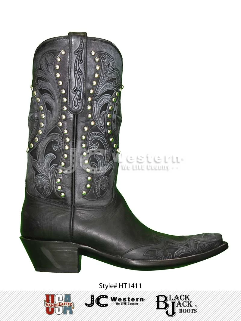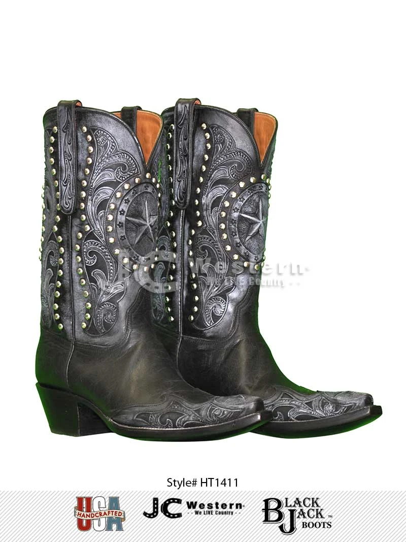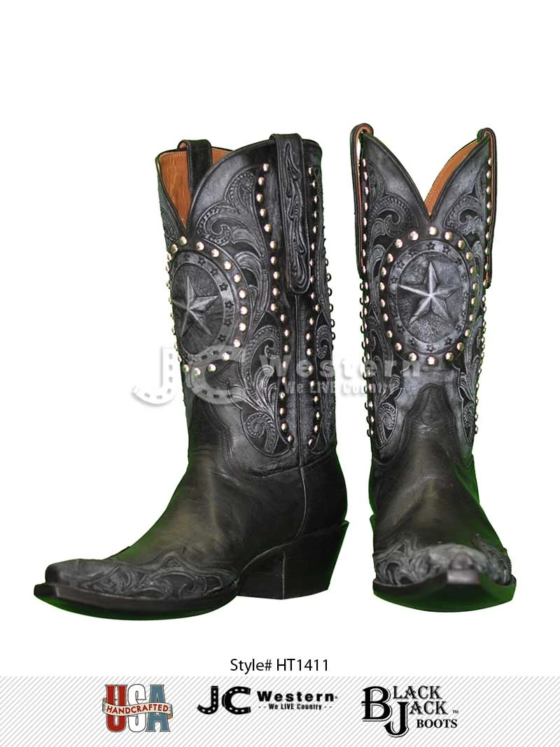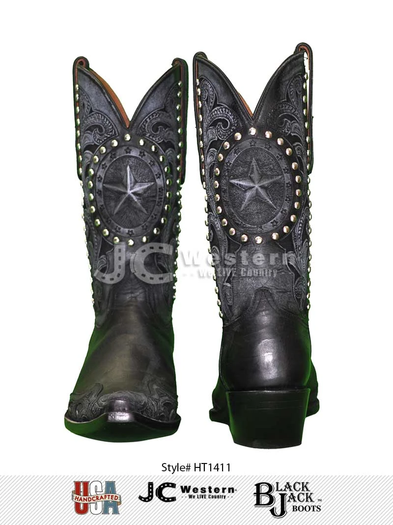 Black Jack HT-1411 Mens Handtooled Vintage Western Boots Black