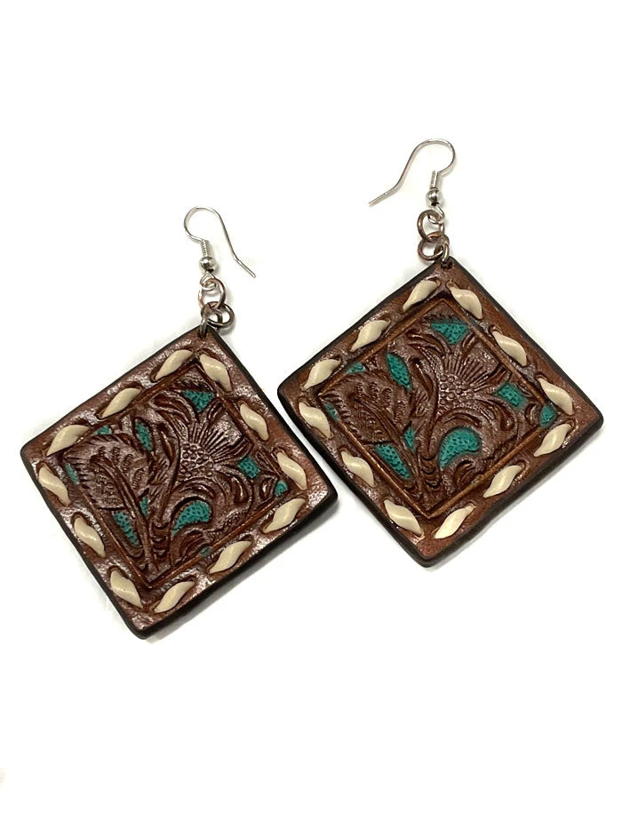 Blazin Roxx 30969 Womens Laced Edge Leather Earrings Brown – When a simple look needs a bit of glam reach for these Blazin Roxx earrings by M&F Western Products. Genuine embossed leather earrings that are pierced with turquoise underlay and ivory buck laced edges. Pair with a simple shirt and jeans or compliment your little black dress for a special occasion.
