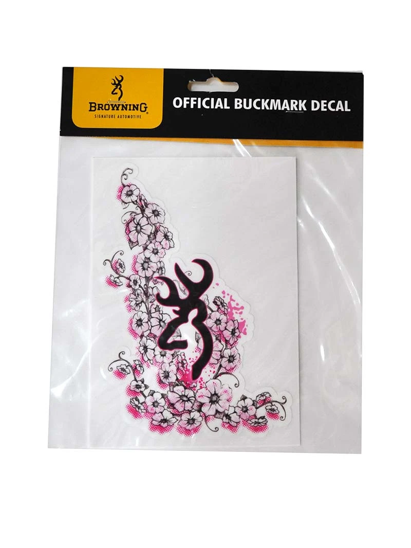 Browning Logo Official Buckmark Flower Pink Black Decal Sticker