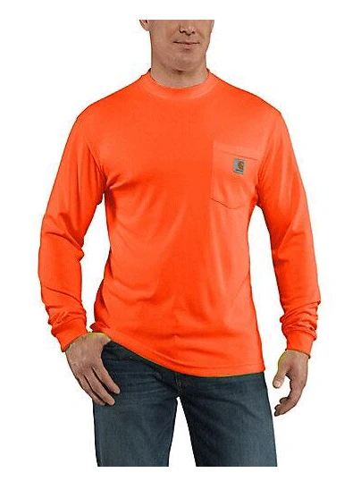 Carhartt 100494-824 Mens Force Color Enhanced Long Sleeve T-Shirt Brite Orange – For over a hundred years, Carhartt has been helping workers get the job done in tough conditions. This men’s long-sleeve t-shirt is made of performance fabric that wicks away sweat and repels stains. The relaxed fit gives you plenty of room to move.