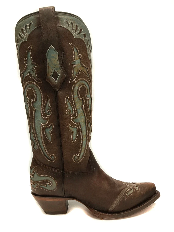 Corral C3925 Ladies Inlay & Embroidery Wing Tip Western Boot Brown