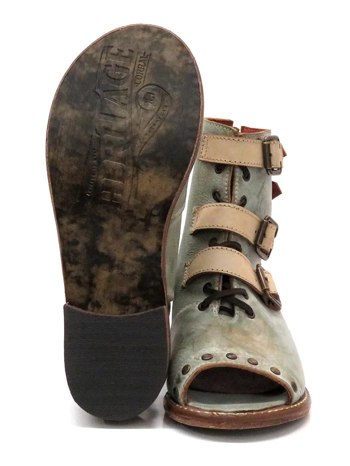 Corral F1189 Women’s Western Heritage Moss Lace and Straps Sandal Distressed Green
