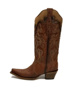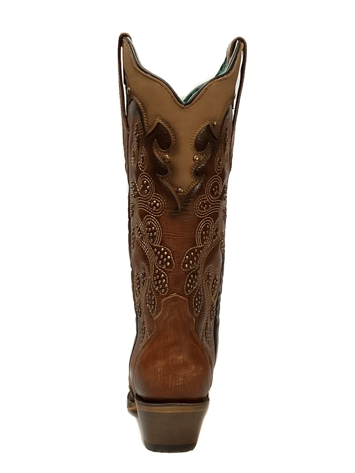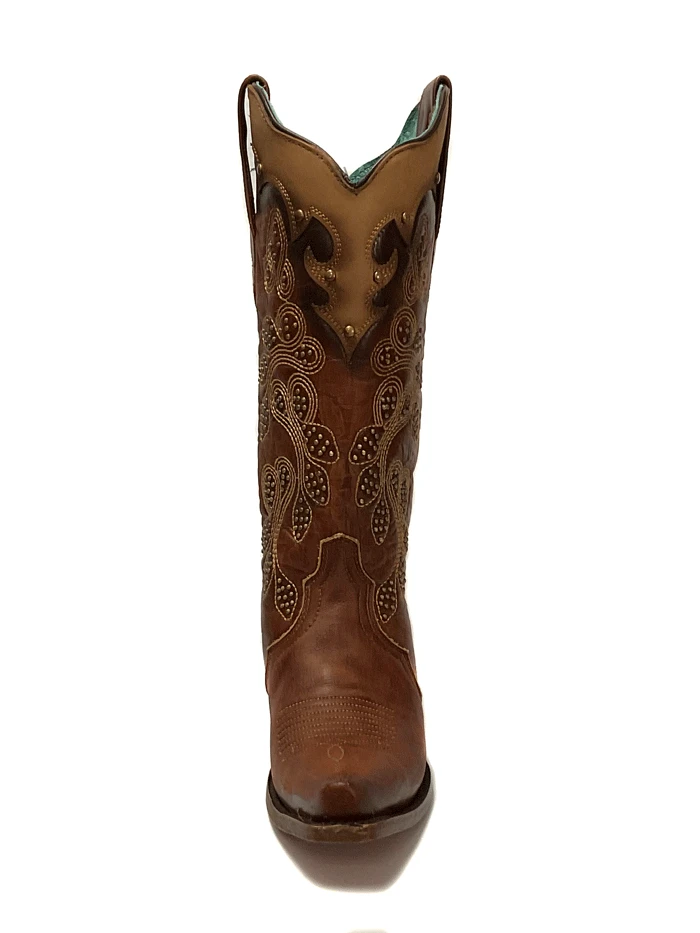 Corral Z5088 Ladies Embroidery And Studs Overlay Snip Toe Boots Tan