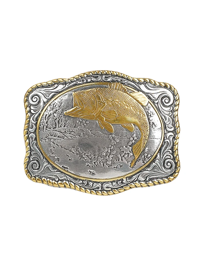 Crumrine 38056 Vintage Bass Fish Buckle Silver – Gold plated bass fish on rectangular buckle, with a gold rope edging make this Crumrine buckle a perfect gift for your favorite fisherman. This buckle will look great with your favorite pair of jeans or dress pants.