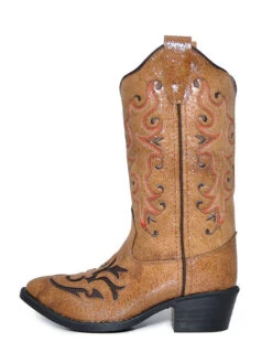 Dan Post DPC2940 DPC3940 Kids Rascal Square Toe Boot Brown – It will be easy to run and play in this durable leather Rascal boot. A light brown foot sits below a dark brown shaft with classic western stitching. Pull holes add extra ease. Also features a broad square toe, cowboy heel, and rubber outsole for a secure grip