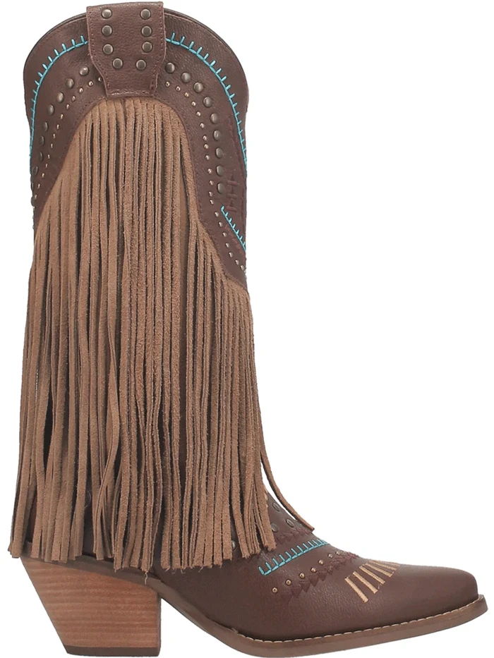 Dingo DI737 Womens Gypsy Leather Boot Brown – Footloose and carefree? The Dingo1969 #Gypsy is designed for a wanderer, someone seeking life outside the norm. Beautifully crafted of soft leather with captivating stud accents. The fringe sways, moves and dances to the beat of your life.