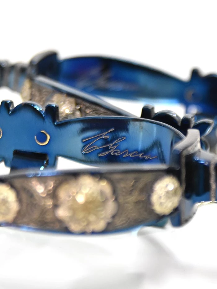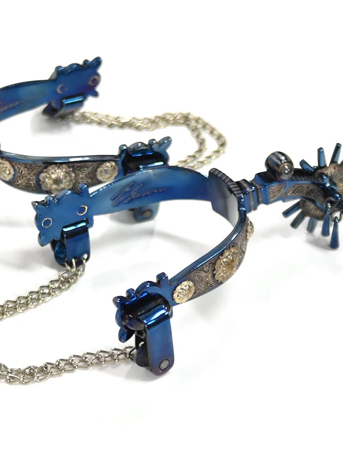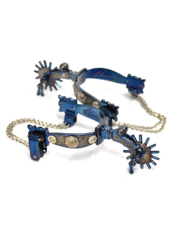 E. Garcia Authentic Blue Inlay w/ Jingle Bobs Cowboy Boot Spurs SP2271