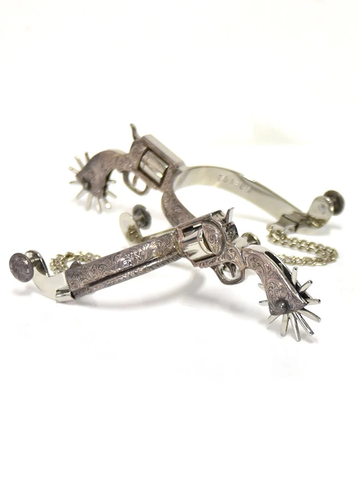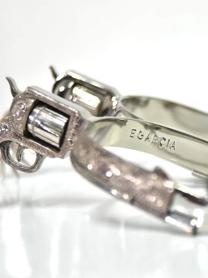 E. Garcia Authentic Revolver w/ Chain Floral Inlay Boot Spurs SP2311