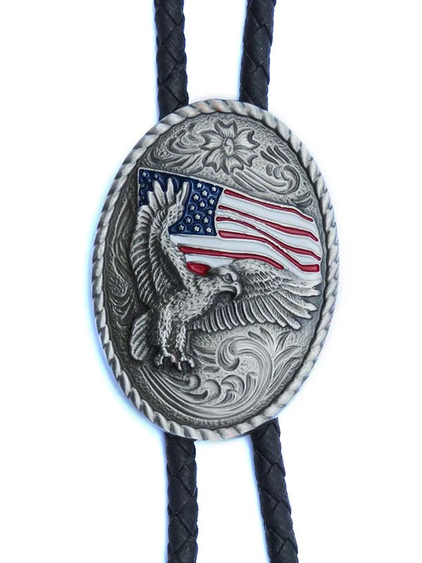 Eagle with USA Flag Oval Bolo Tie 22612