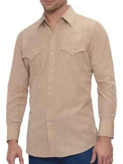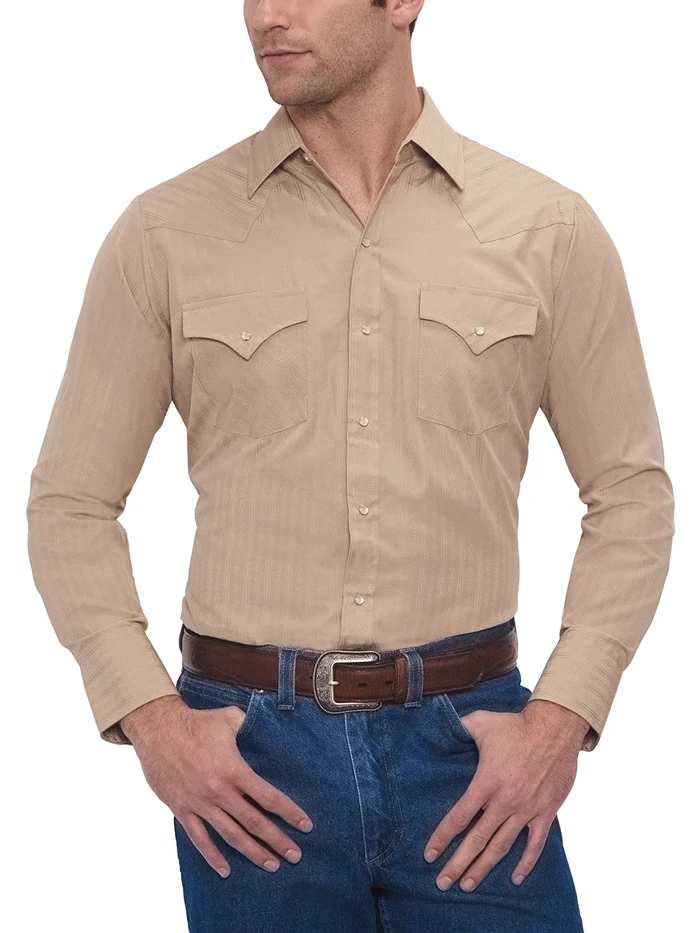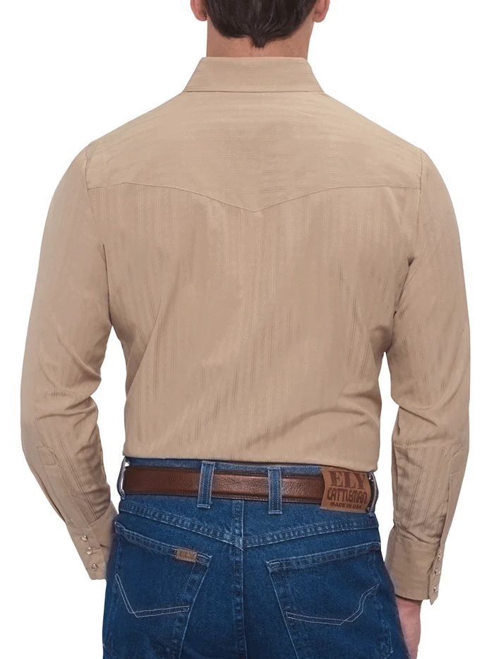 Ely Cattleman 15201934-28 Mens Long Sleeve Tone On Tone Western Shirt Khaki