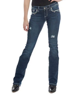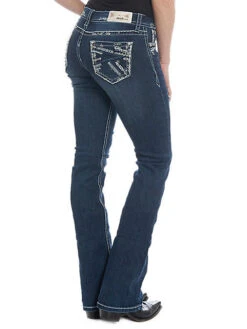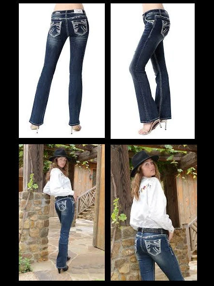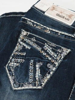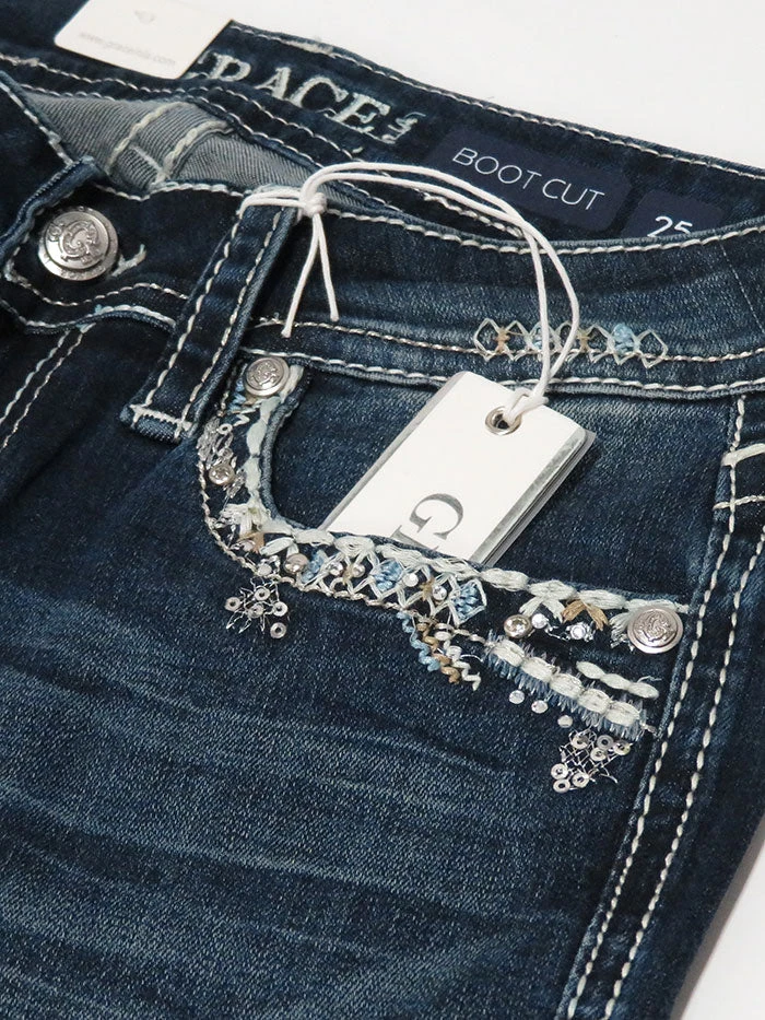 Grace In LA JB-51372 Womens Stitched Embellished Bootcut Jeans Dark Wash
