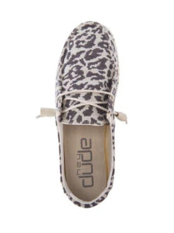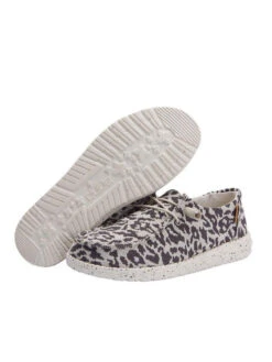 Hey Dude 121413091 Womens Wendy Wooven Shoe Cheetah Grey – Step out into the wild with the Wendy Woven collection. A style designed with fun prints through a textured woven, polyester-blend upper for breathable comfort. Finished off with an ultralight outsole and an easy-on system with elastic laces. You’ll tackle any day with this exotic show stopper!Â