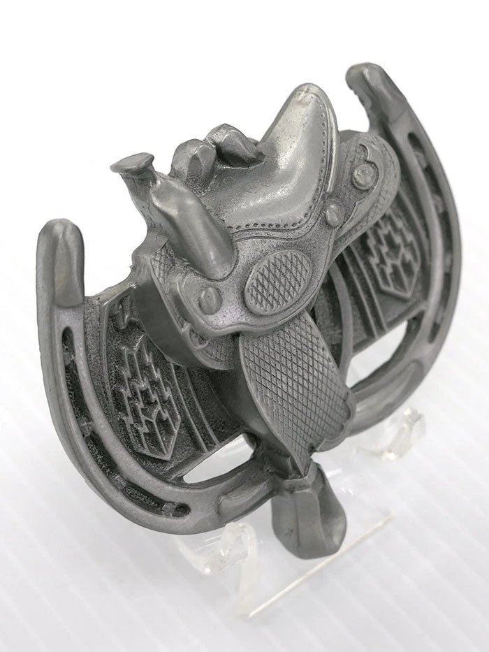 Horseshoe and Saddle Solid Pewter Belt Buckle 1964