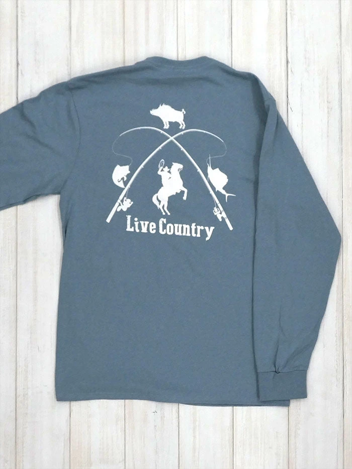 JC Western 1PC61LS Mens Live Country Long Sleeve Tee Light Blue