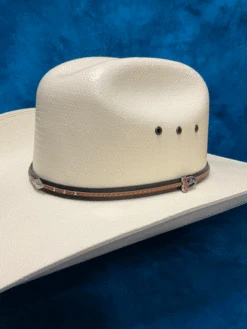 - Two Tone Leather Hatband With Diamond-Shape Conchos Accent