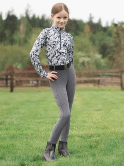 Kerrits 60524-SHDW Kids Ice Fil Performance Riding Tight Shadow Grey – These versatile tights use high-tech fabric that works to keep kids comfy year-round. Cutting-edge Ice Fil® technology wicks and cools while providing UPF+50 sun protection. Strategically distributed Anti-Slip Kerrit Sticksâ„¢ along the inner leg and seat grip, breathe, and stretch for added confidence. Handy side pockets for lip stuff and horse treats.