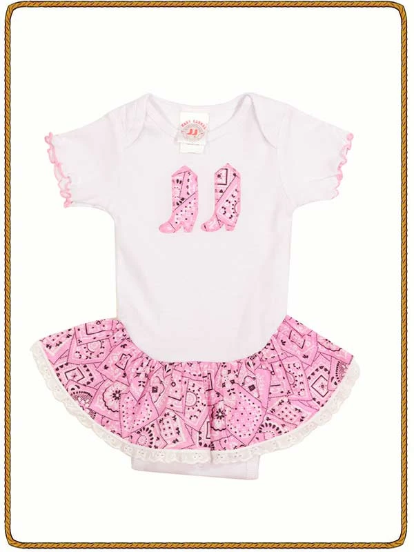 Baby Korral Cowgirl Onesie – KK11P is part of the Baby Korral collection. This onesie with bandana pink detailing is perfect for your little cowgirl.