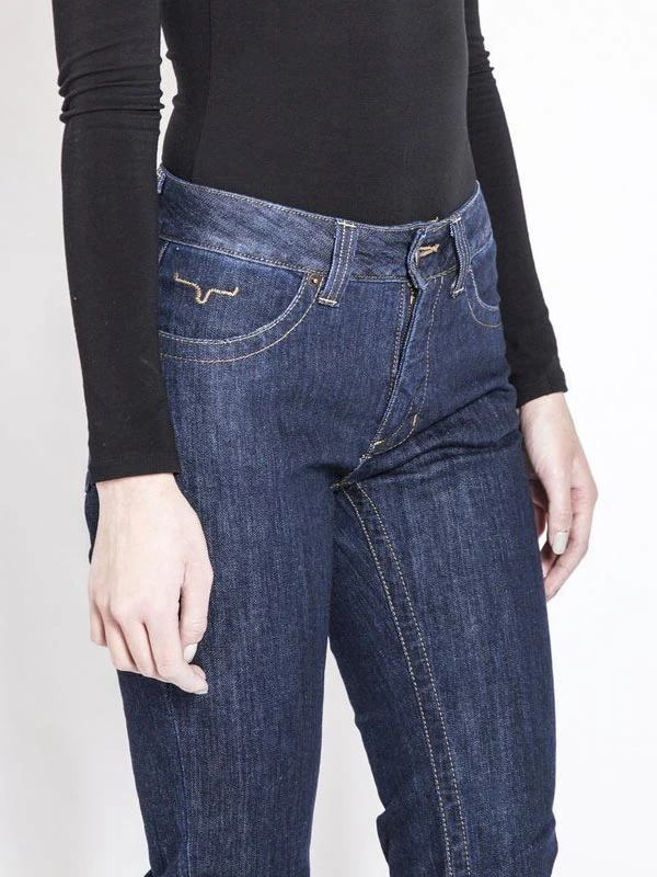 Kimes Ranch Ladies Betty USA Made Mid-Rise Bootcut Jeans – The Betty emulates these traits. Made with only the best denim, Betty is quality. She sits mid-rise elegantly. With a proper fitted upper thigh and knee, she accentuates the leg. The boot opening is modest yet practical perfect for over the boot or tucked in. The Betty is style at its best.