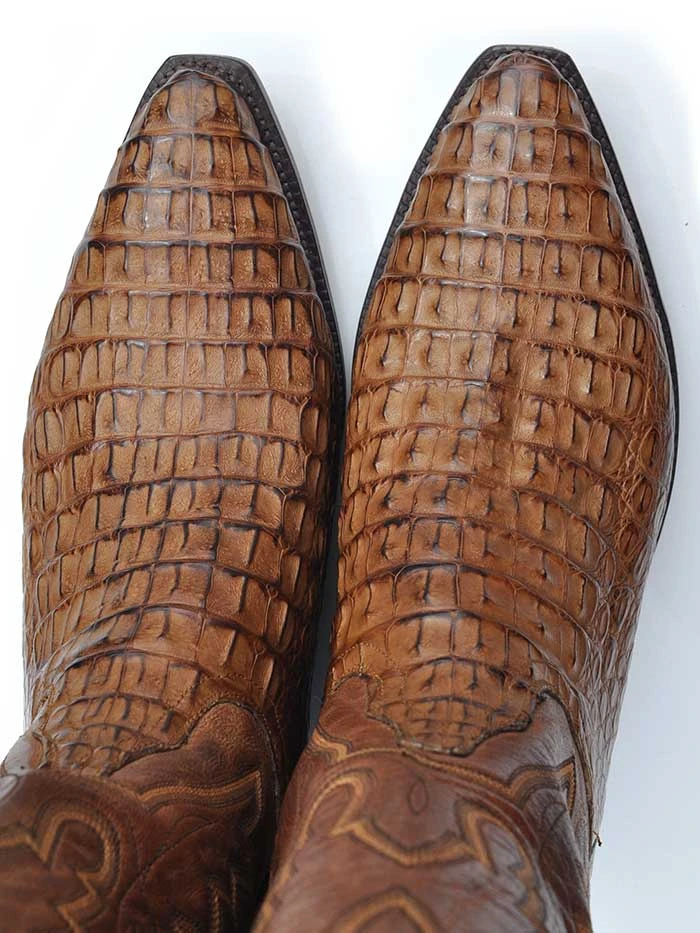 - Vamp: Tan Burnished Mad Dog Hornback Caiman Leather