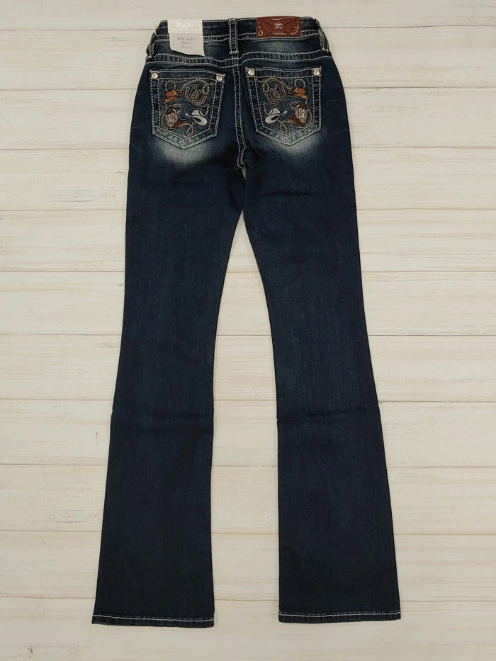 Miss Me M3772B Womens Western Cowgirl Embroidered Mid Rise Bootcut Jeans Blue