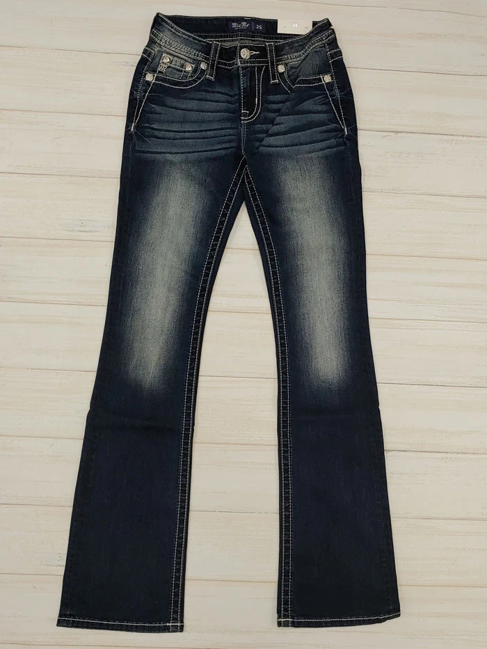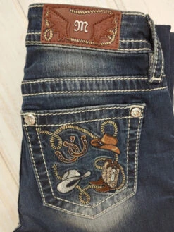 Miss Me M3772B Womens Western Cowgirl Embroidered Mid Rise Bootcut Jeans Blue –