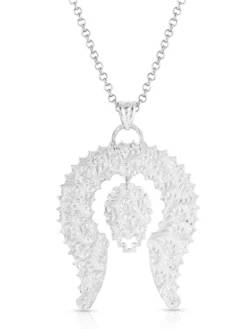 Montana Silversmiths JS4927 Womens Lucky’s Charming Horseshoe Jewelry Set Silver – Charms are not a trend of the past. They arrived and are here to stay! The Lucky’s Charming Horseshoe Jewelry Set contains a necklace with matching earrings. The necklace dangles from a 16 inch chain from each side, while the earrings hang from French hooks. Both have a silver-toned horseshoe with roping detail that holds three charms: a feather, a teardrop-shaped crystal, and a turquoise sphere. It’s a complete look!