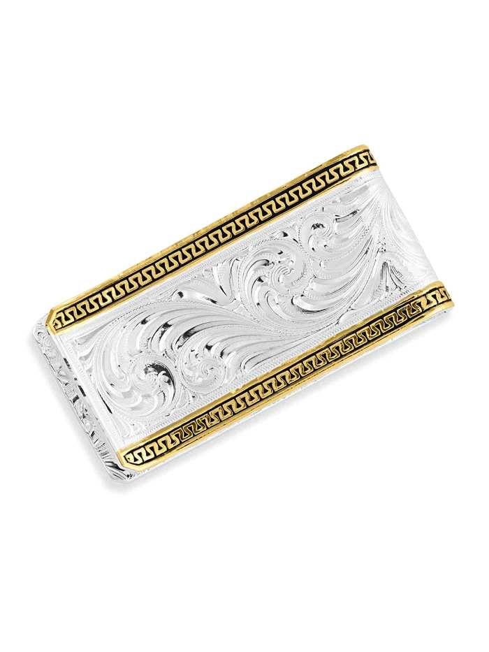 Montana Silversmiths MCL5235 Two-Tone Carved Longhorn Money Clip Silver