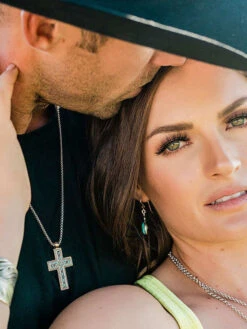 Montana Silversmiths NC4818 American Legends Mosaic Cross Necklace – This American Legends Mosaic Cross signifies faith and highlights the center of it all. Really! It is a fine silver finished cross that is outlined in rose gold. It has coral, mother-of-pearl, onyx and turquoise inlay that are laid in a pattern of pointing towards the center. The center of the cross shines! This necklace hangs from a intricate 23″ chain.
