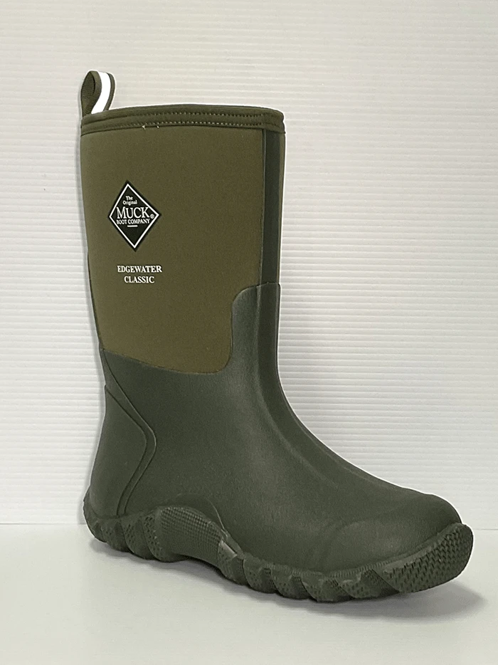 Muck EMC-300 Mens Edgewater Classic Mid Boot Moss Green -The Original and Best Field Boot. For those who love the great outdoors, the Edgewater is for you. The reinforced, protective shell and all-terrain outsole makes this boot perfect for camping, hunting, fishing and off-road sports, while doing double duty as a lightweight work boot.