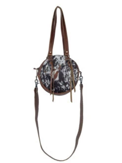 This quirky little bag is quite spacious with adjustable leather straps. The hairon leather construction will make provide resilience and long-lasting use.