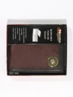 This is a classic Nocona Leather bi-fold style wallet by M&F Western Products®. It features a removable passcase and has a 12 gauge shotgun shell concho on the front. Inside features a clear ID slot, 6 credit card slots, removable photo insert, and a place for your cash. Buy for yourself or give this quality western gift to that special someone.