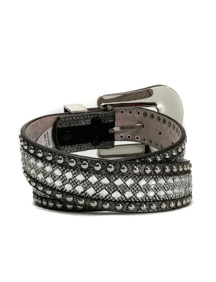 Nocona N320004036 Womens Studded Bling Leather Belt Silver
