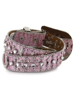 Nocona N4411030 Kids Glitter Horseshoe Concho & Rhinestones Belt Pink