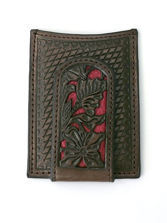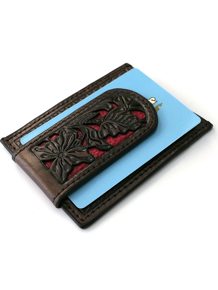 Nocona N5426504 Men’s Red Floral Inlay Magnet Western Money Clip by M&F Western Products features a beautiful floral embossed overlay set off by a red underlay. The basket-weave embossed back is a perfect finish to this elegant cowboy money clip. The back features multiple card slots and a durable money clip.