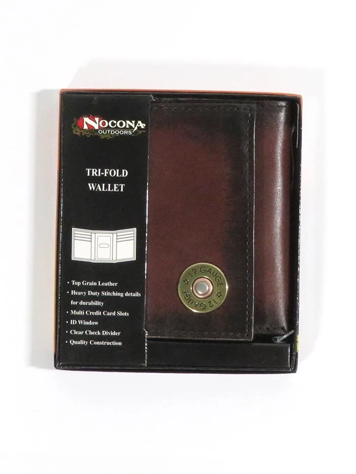 Nocona N5429902 Mens 12 Gauge Outdoor TriFold Leather Wallet Brown