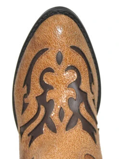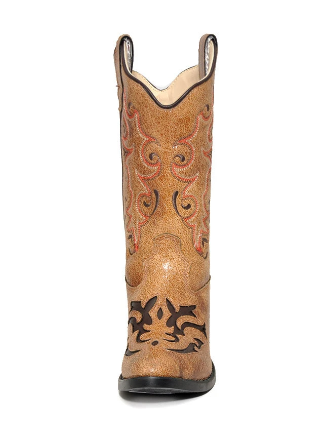 Girls Old West Inlay Round Toe Tan Cowgirl Boots VJ9113