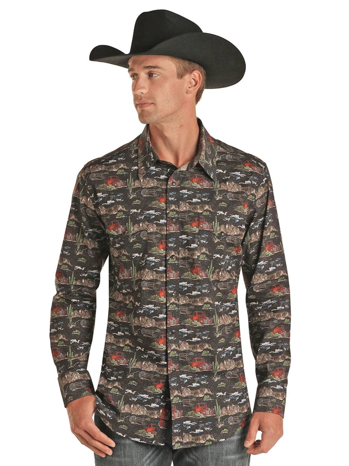 Rock & Roll Denim B2S1316 Mens Dale Brisby LS Snap Shirt Black
