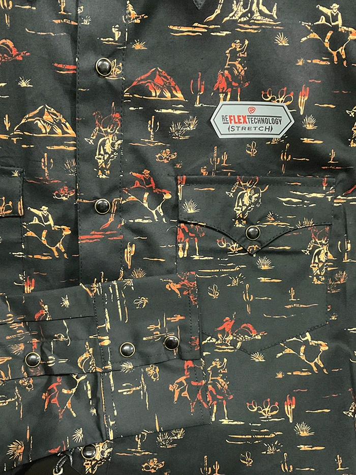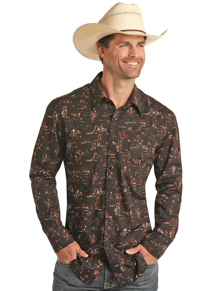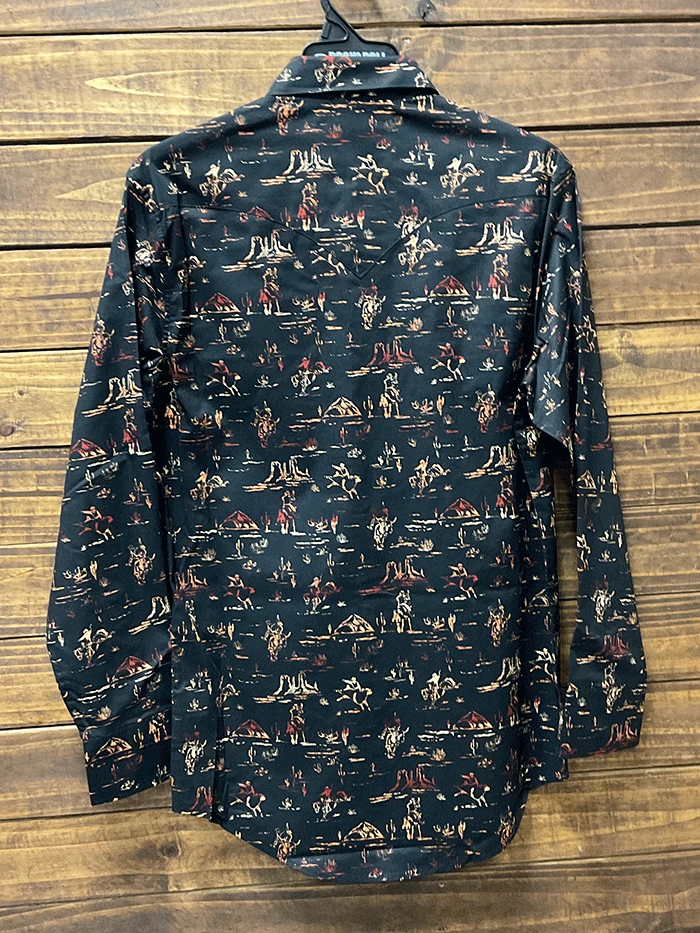 Rock & Roll Denim B2S3305 Mens Long Sleeve Snap Shirt Cowboy Print Black/Rust